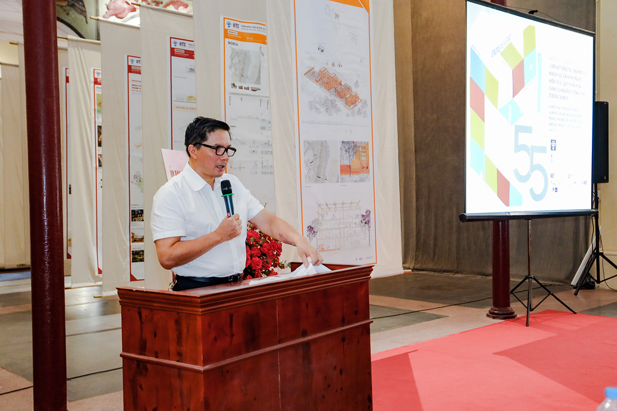 Phát biểu khai mạc sự kiện, PGS.TS.KTS. Lê Quân - Hiệu trưởng Trường Đại học Kiến trúc Hà Nội cho biết: Hội thảo “Liên kết đào tạo, nghiên cứu khoa học và hành nghề Kiến trúc, Quy hoạch và Cảnh quan bằng tiếng Pháp ở Đông Nam Á” với mục đích chia sẻ thành tựu đổi mới sáng tạo trong hợp tác đào tạo, nghiên cứu khoa học và triển khai thực tế về kiến trúc, quy hoạch và cảnh quan ở Đông Nam Á; kết nối mạng lưới chuyên gia kiến trúc, quy hoạch và cảnh quan trong khu vực, thúc đẩy phát triển mạng lưới này gắn kết với thế giới; phát huy giá trị các thành tựu đổi mới sáng tạo đã đạt được, hướng tới phát triển mô hình thực nghiệm đô thị sống Laboratoire vivant (Living Lab) dựa trên 4 nền tảng: chính quyền, người dân, khối hàn lâm và khối kinh tế- xã hội.