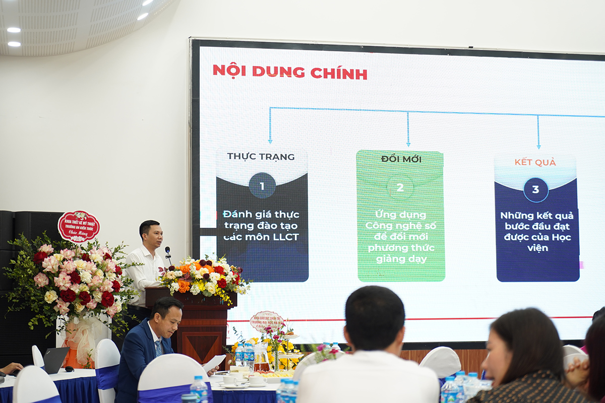 Hội thảo đã thu hút hơn 30 tham luận chất lượng của các giảng viên trong Khoa và các nhà khoa học đến từ nhiều cơ sở đào tạo, nghiên cứu. Nội dung các bài tham luận tập trung phân tích những vấn đề lý luận, thực tiễn đặt ra đối với việc giảng dạy các môn Lý luận chính trị trong bối cảnh chuyển đổi số và hội nhập quốc tế; đồng thời đề xuất những định hướng, giải pháp nhằm nâng cao chất lượng dạy và học, đáp ứng yêu cầu đổi mới giáo dục đại học hiện nay.