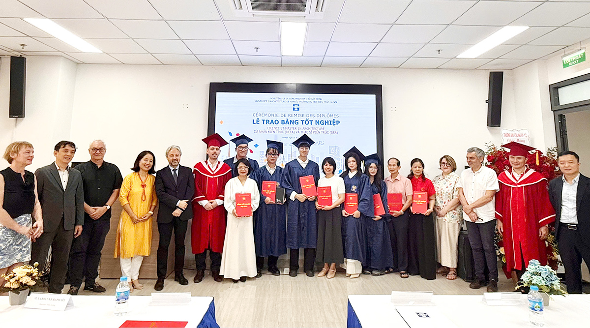 Thành công của Lễ trao bằng tốt nghiệp năm 2026 một lần nữa khẳng định chất lượng và uy tín của các chương trình liên kết đào tạo quốc tế tại Trường Đại học Kiến trúc Hà Nội. Những tân Cử nhân, tân Thạc sĩ bước ra từ chương trình không chỉ mang theo nền tảng tri thức chuyên môn chuẩn châu Âu mà còn trở thành những đại sứ văn hóa, góp phần thắt chặt hơn nữa mối quan hệ hợp tác chiến lược tốt đẹp giữa Việt Nam và Cộng hòa Pháp.