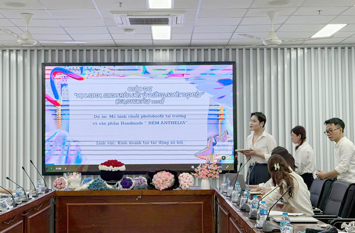 Căn cứ kết quả chấm điểm theo các tiêu chí cụ thể, Ban Tổ chức đã trao 01 giải Nhất, 01 giải Nhì, 01 giải Ba và 03 giải Khuyến khích cho các nhóm tác giả. Trong đó, giải Nhất thuộc về dự án “Mô hình chuỗi photobooth tại Trường và sản phẩm handmade HẺM.ANTHELIA” thuộc lĩnh vực Kinh doanh tạo tác động xã hội, của nhóm sinh viên: Bùi Phương Thảo, Trần Hoàng Cẩm Tú, Trần Minh Đức, Nguyễn Thị Huyền Trang (lớp 23PL) và Phạm Đình Cảnh (lớp 23NT1). Giảng viên hướng dẫn: ThS. Nguyễn Thùy Linh.