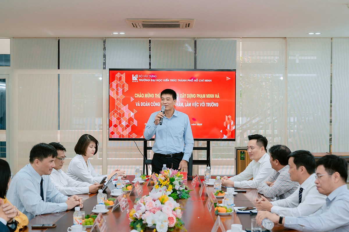 Hội nghị được tổ chức dưới sự chỉ đạo của Thứ trưởng Bộ Xây dựng Phạm Minh Hà cùng đại diện lãnh đạo Vụ Tổ chức cán bộ, Vụ Kế hoạch Tài chính, Vụ Khoa học công nghệ - Môi trường - Vật liệu Xây dựng, lãnh đạo hai Trường đại học, đại diện các đơn vị chuyên môn và các cán bộ chủ chốt.